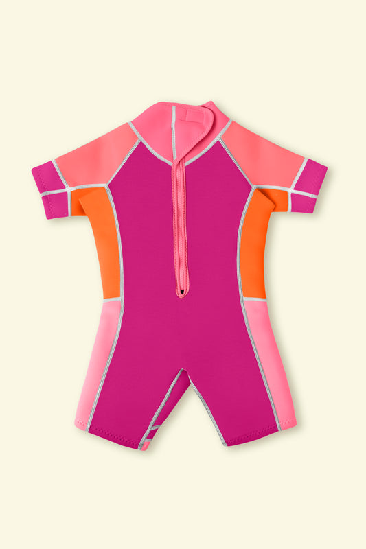 This is our favorite westsuit! My daughter is easy to be seen and this wetsuit is easily put on and off. Fabulous colors and we love the shorts , short sleeves, and neckline. We use this many pool days even when 90 degrees out because our kiddo stays in until pool closing and it gets chilly. She’s the only one at swim class not shivering. Please consider making adult sizes; i have a spring suit but can barely get it on and off and would love one of these!